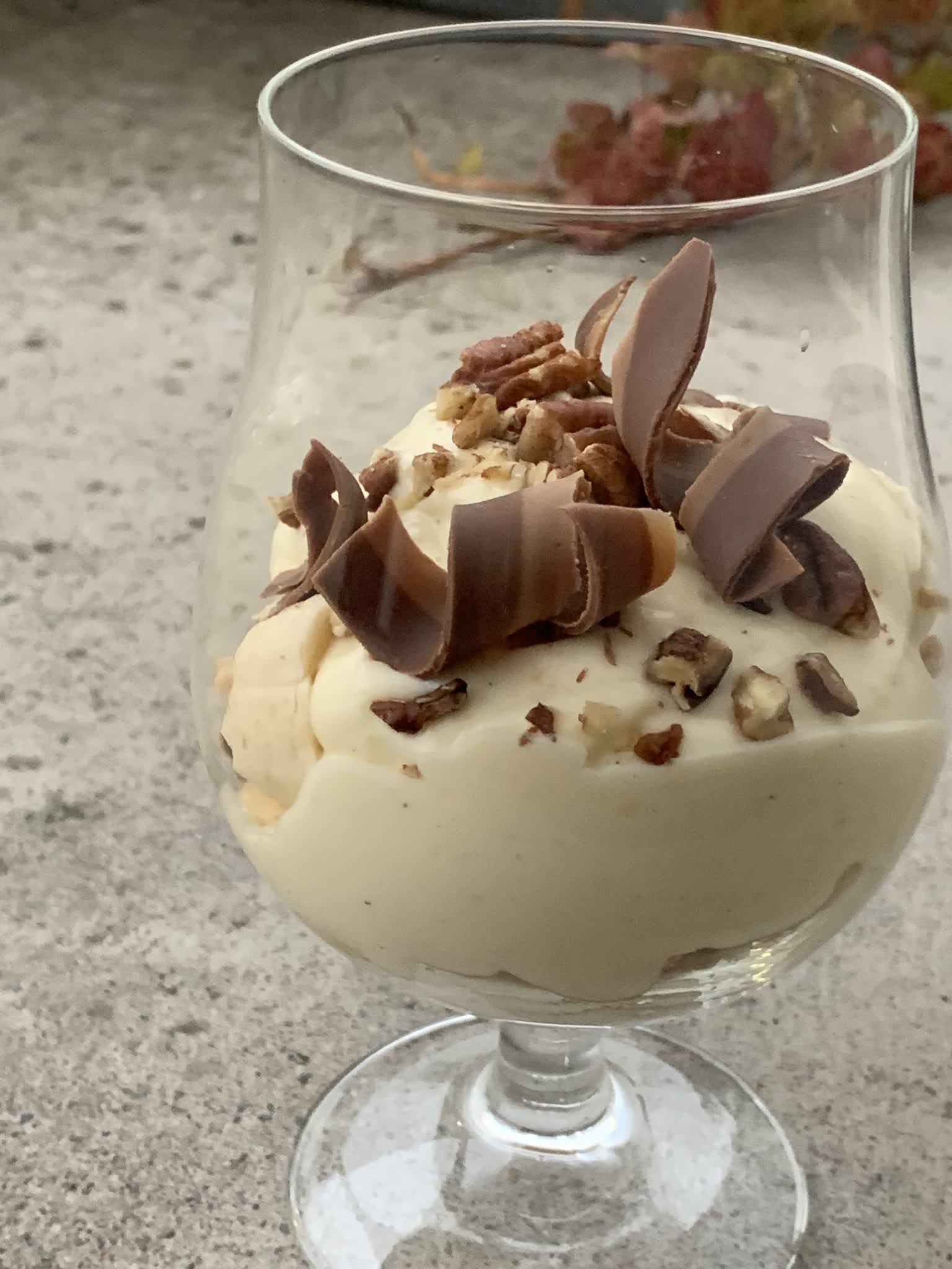 Avslutade med att hacka pekannötter och hyvla en dubbelnougat över som dekoration.