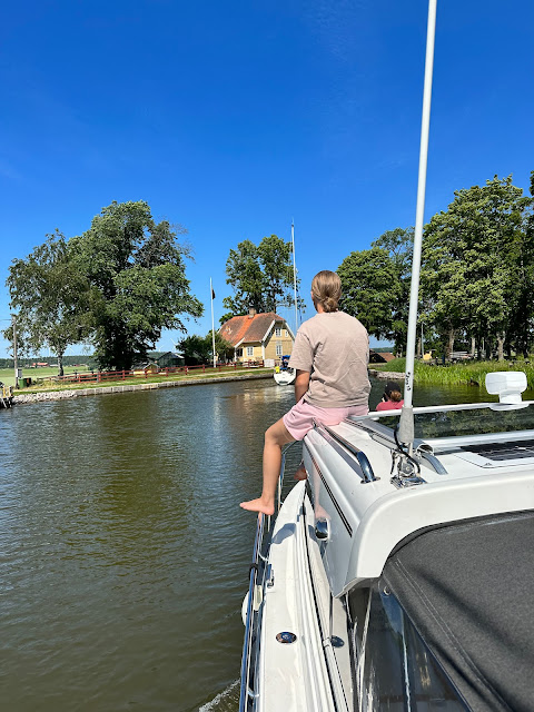 Barnen, några av dem, kom på efter 2/3 av kanalen och slussade med oss. Vi började i Mem och de kom på i Karlsborg. Två åkte med även på Trollhättans kanal.